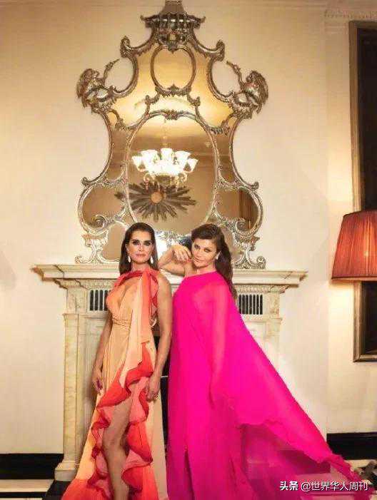 身高183厘米的波姬·小丝,身着粉色斗篷纱裙,依旧有着不凡的气场同时又极具女性魅力。