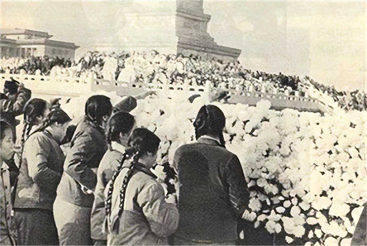 全国各地的人民纷纷赶来,为看敬爱的周总理一眼,也为亲手献上饱含自己心绪的花圈。