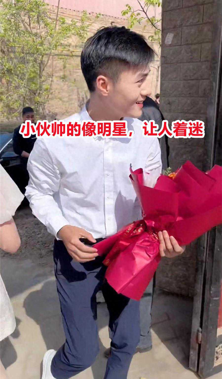 真正长得好看的人都是360度无死角的,小伙送完花转身的瞬间,从近距离看他,眉目清秀、神采奕奕,越发显得他英俊帅气。