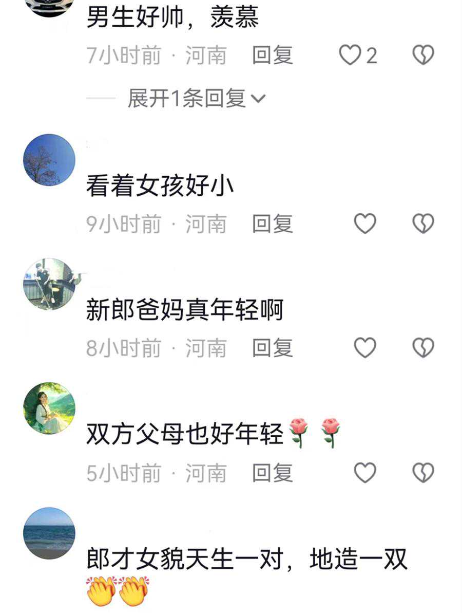 还有人则是觉得小伙和女孩都长得太显小了,而双方父母年纪也不大,估计他们属于早婚一族。