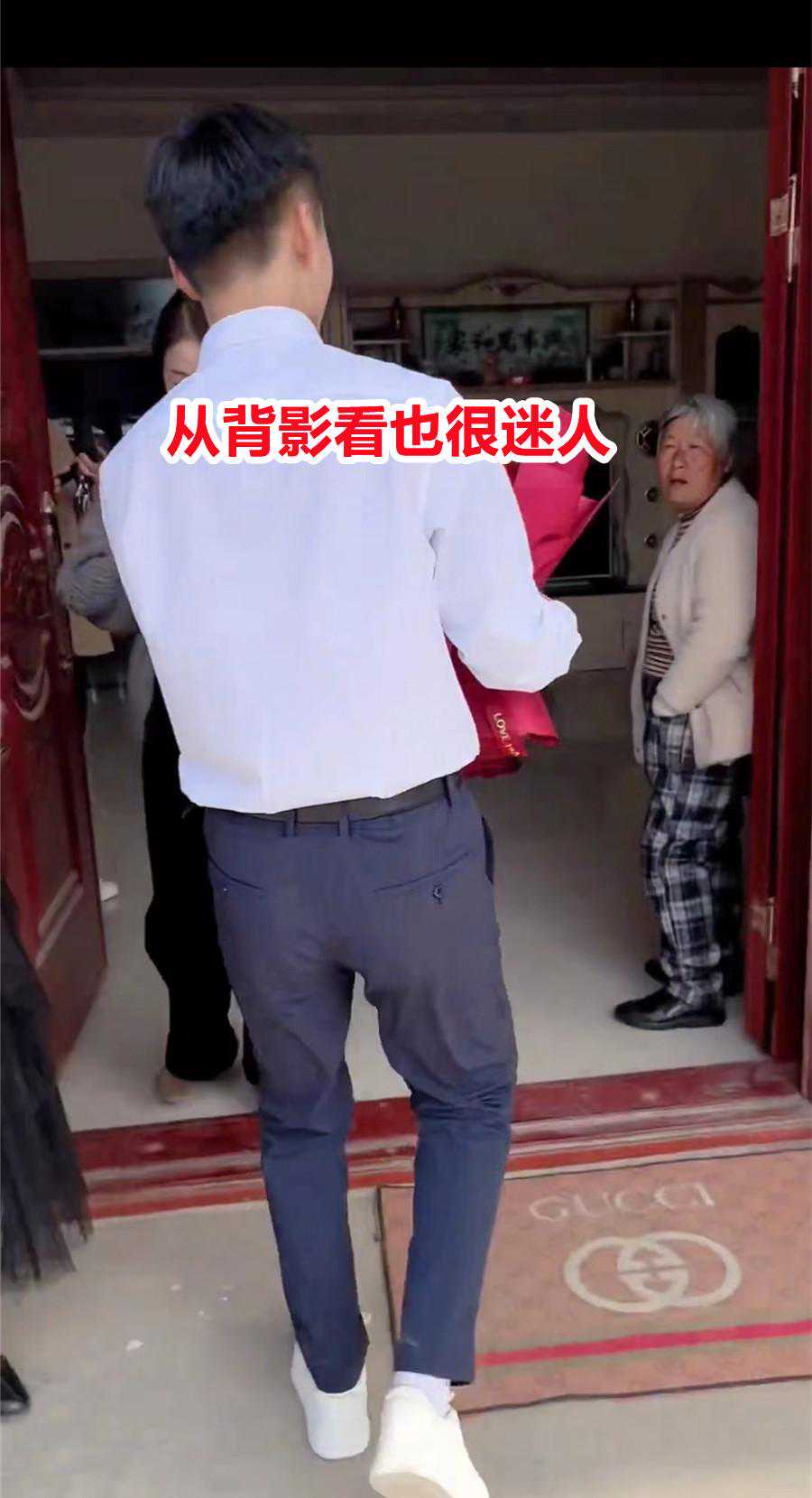 进门的时候,只见小伙背影细长而挺拔,一头乌黑浓密的头发让他整个看起来更加健硕。白色衬衣配上白色运动鞋,显得青春而又时髦,就连门口的奶奶见到小伙出众的长相后也忍不住多看了两眼。