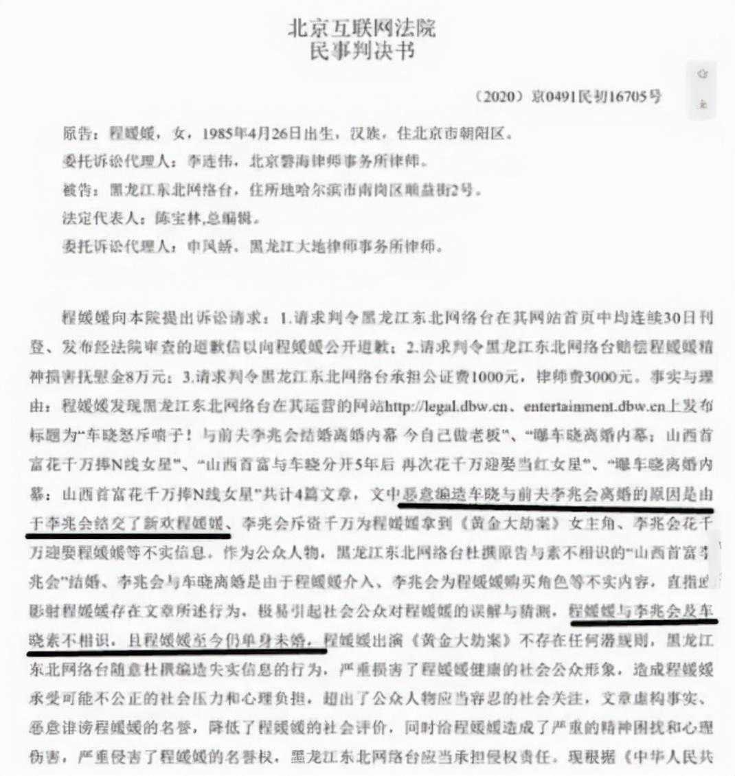 2020年,程媛媛在这场名誉权官司里胜诉。