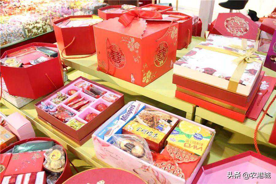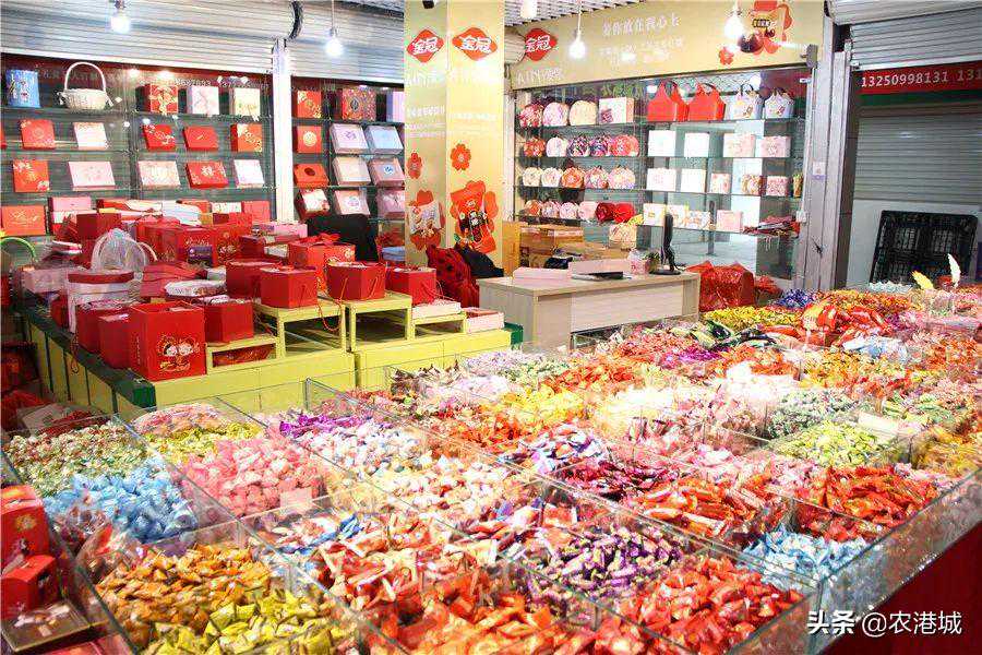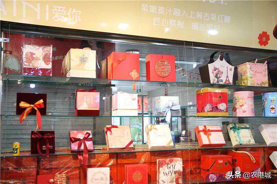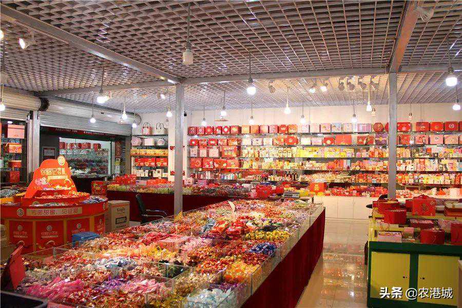 在农港城副食品市场,老板经营了沃阳食品和沃阳喜铺两家店,批发零售各类喜庆糖果、休闲食品、炒货干货、酒水饮料等等,给新人带去满满的甜蜜与祝福~地址:农港城A4区2-1149、1155、1167号—店内产品—