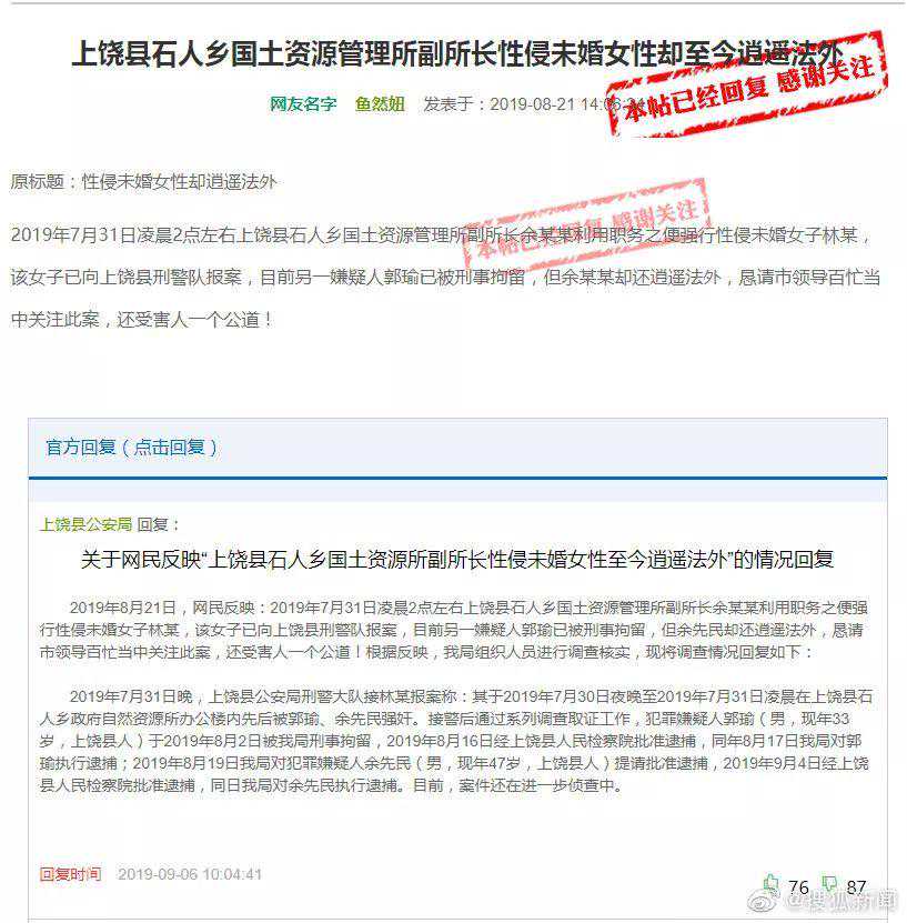 当地警方解释,8月19日对犯罪嫌疑人余先民(男,现年47岁,上饶县人)提请批准逮捕,9月4日经上饶县检察院批捕,目前案件还在进一步侦查中。
