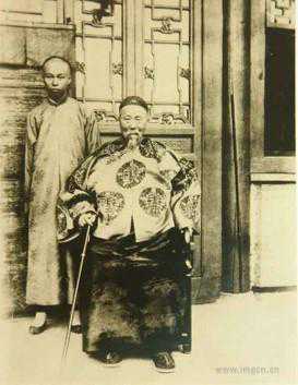 李鸿章和第三个儿子李经迈的合影。李经迈1876年出生,两人相差53岁