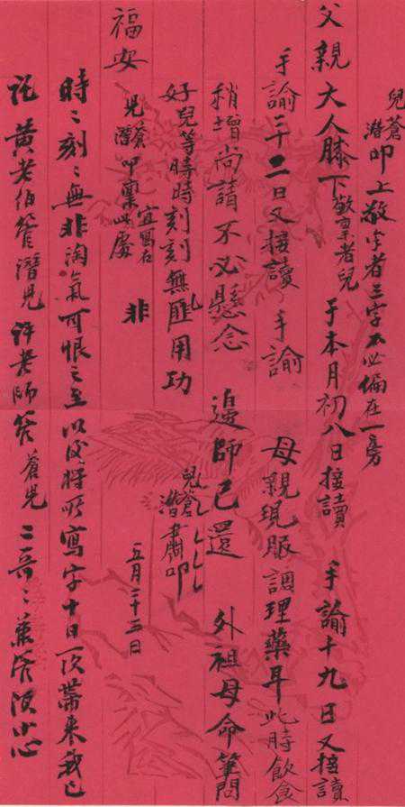 同日,边夫人照管下的志沧、志潜,也用歪歪斜斜的稚气笔迹给爸爸写信:“儿于本月初八日接读手谕,十九日又接读手谕,三十一日又接读手谕。母亲现服调理药耳,此时饮食稍增,尚请不必悬念。边师已还,未注明命笔问好。儿等时时刻刻无匪(非)用工。”张佩纶对信中错别字做了记号,并留言:“时时刻刻无非淘气。”“以后将所写字十日一次带来。我已托黄老伯管潜儿,许老师管苍儿,二哥哥兼管,须小心。”你看,这么一个严肃出征背后,人家这样写信。这些家书,将一个在外叱咤风云的男人对夫人孺子的关爱,表现得淋漓尽致。