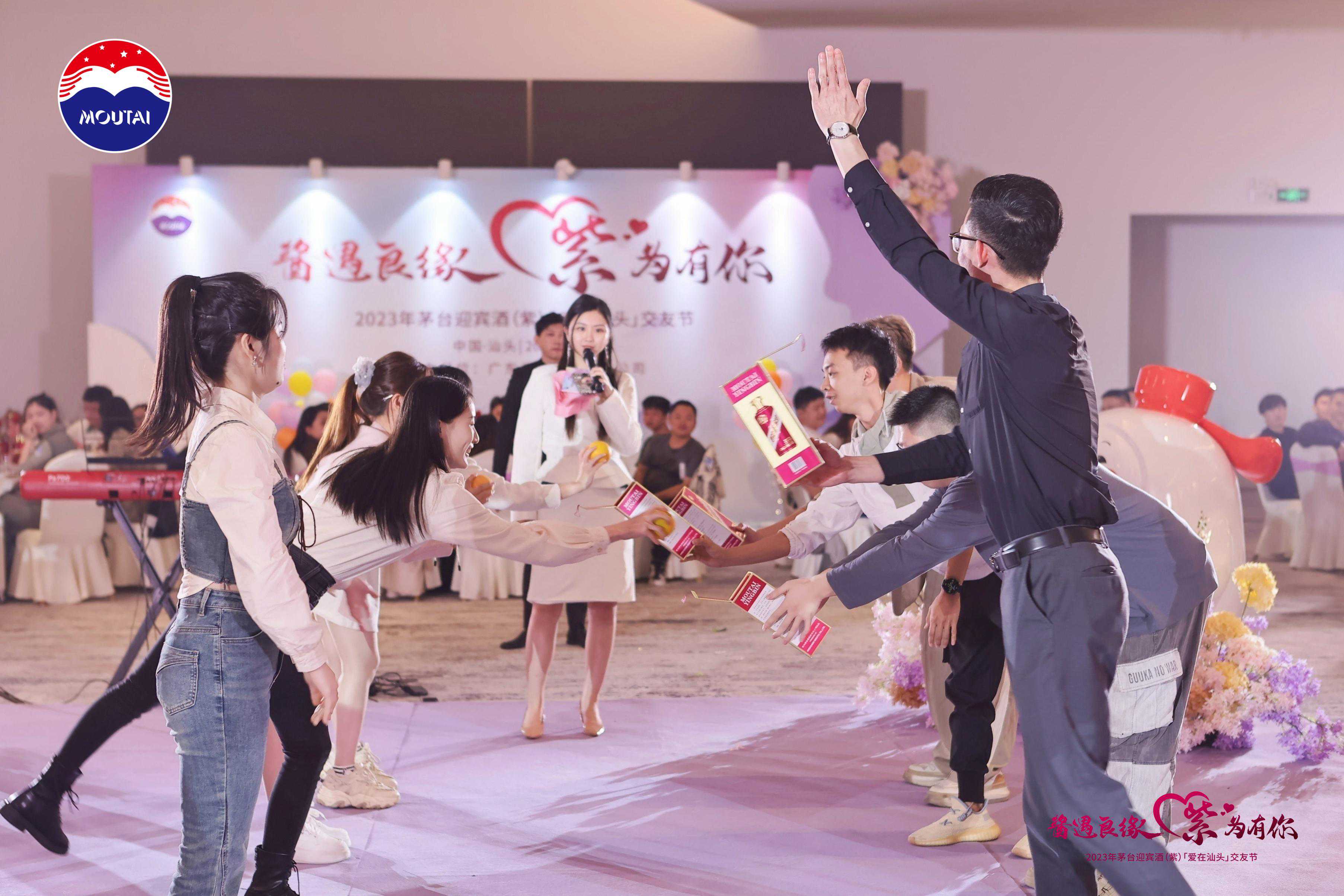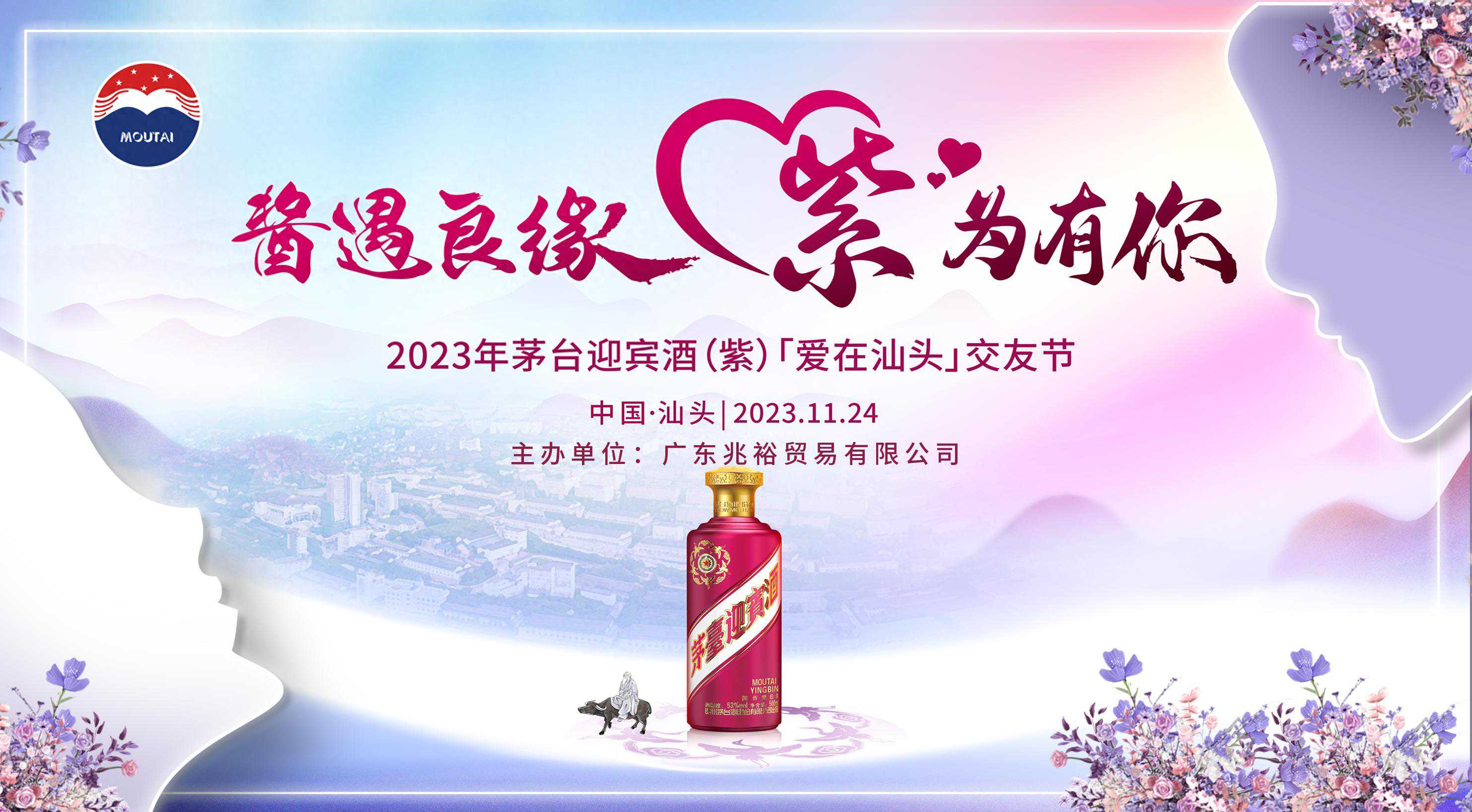 为弘扬文明新风、倡导新时代新风尚,由茅台紫迎宾品牌支持,广东兆裕贸易有限公司主办的【酱遇良缘“紫”为有你----2023年茅台迎宾酒(紫)「爱在汕头」交友节】,11月24日在汕头圆满举行。来自全市五区一县企业、金融、教育、医疗等多个行业的180多名青年男女参加了本次活动,共赴一场暖冬的浪漫。