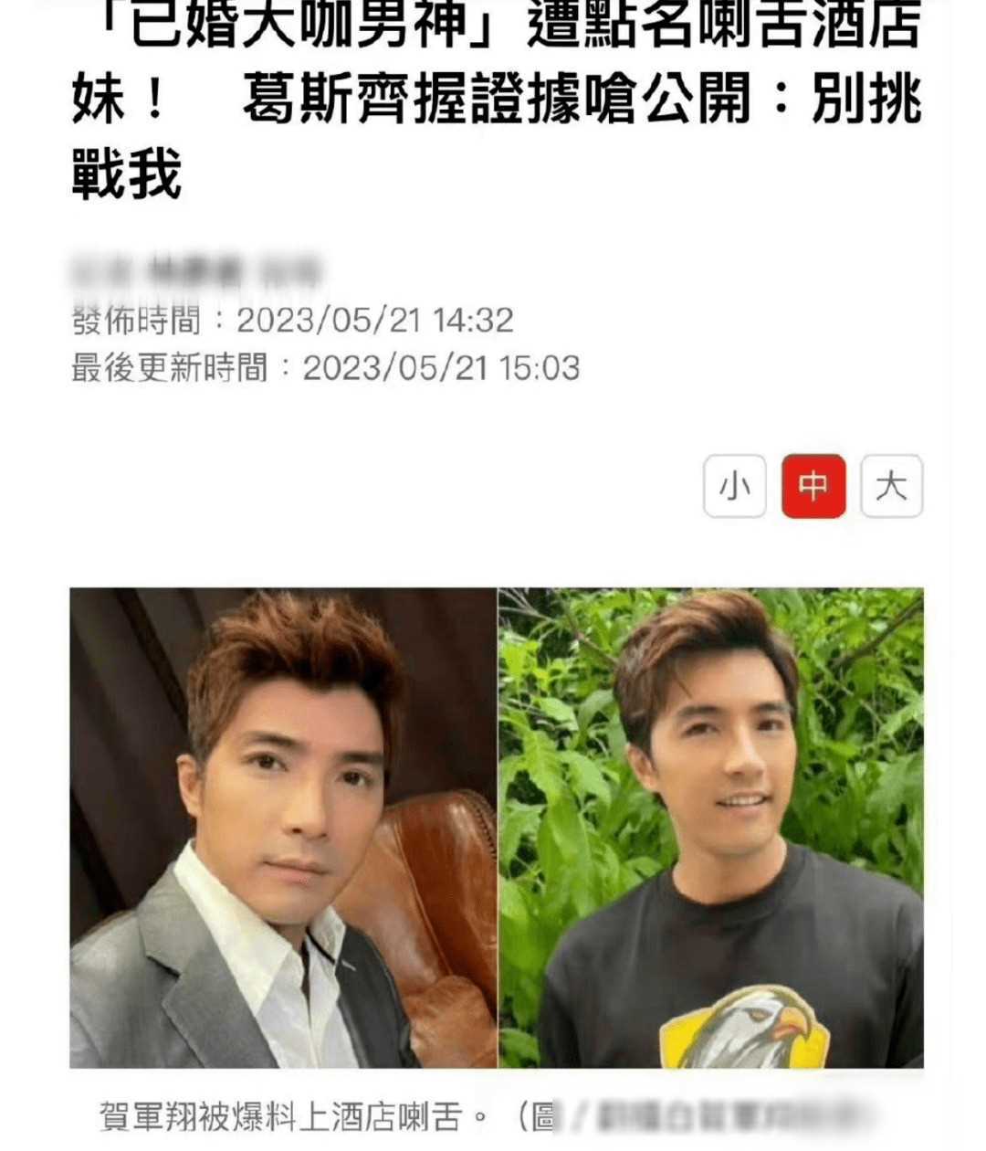 这一消息迅速在网络上传播开来,许多网友纷纷表示难以置信。毕竟,贺军翔曾是许多人心中的禁欲系男神,他在偶像剧中塑造的深情形象深入人心。然而,现实却如此残酷,他的这次行为无疑让粉丝们大失所望。