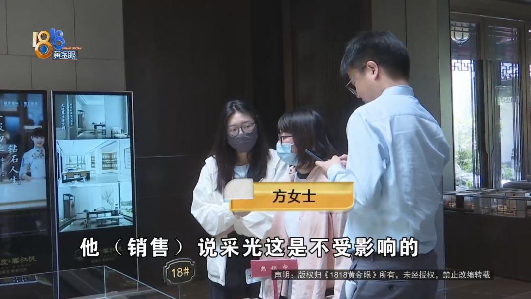 方女士:他(销售)说采光是不受影响的,刮风挡雨还能够遮挡一下,跟你们家没有关系的,他也没跟我说19层是腰线层。