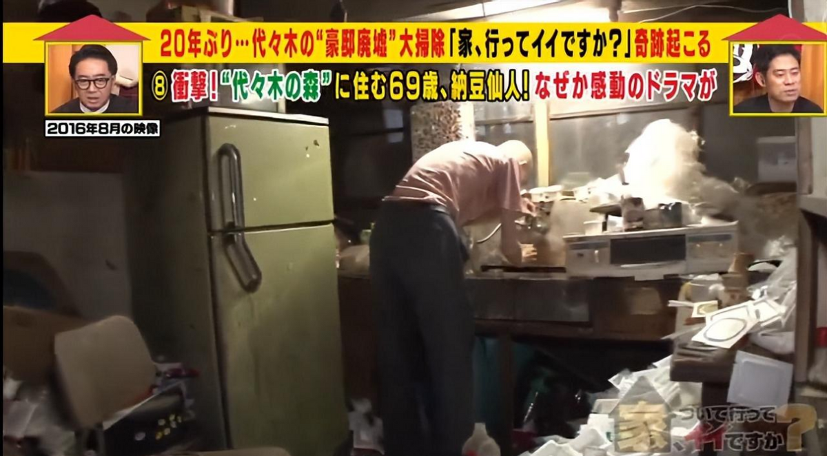 整所房子内外没有一处不塞满垃圾,垃圾在门口堆成了小山也没人清理,据说他吃了几十年的纳豆配饭从来没改过,日用品也从来没买过这样的他到底是怎么生活下去的?他又为什么变成这样?