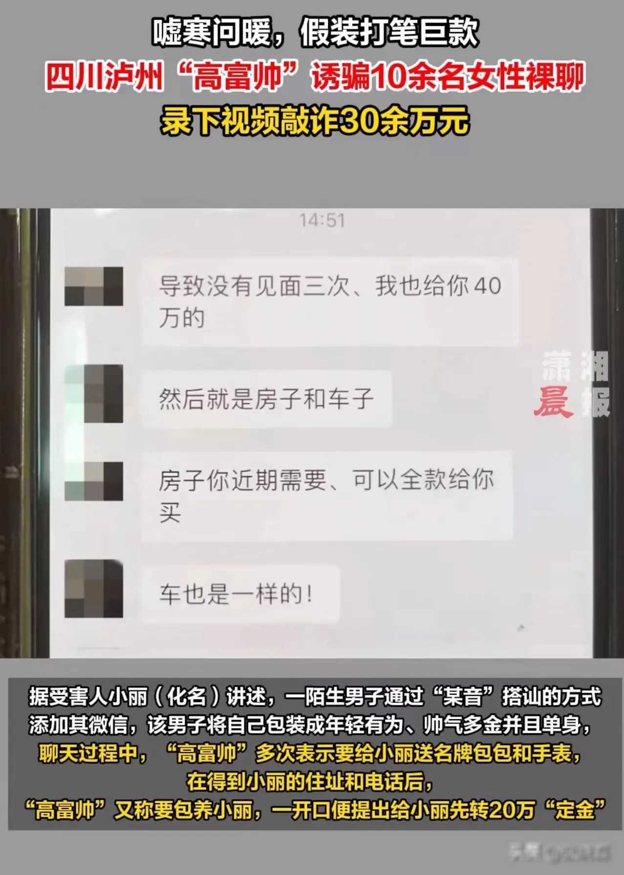 其次,这起事件也反映出了一些人缺乏自我保护意识和辨别能力。在追求所谓的“高富帅”时,一些人往往会忽视对方的真实动机和背景,而盲目相信对方的虚假承诺,导致自己陷入被骗的境地。因此,我们在与陌生人交往时,务必保持理性,不要被表面的华丽所迷惑,要学会用心去观察和辨别对方的真实意图。