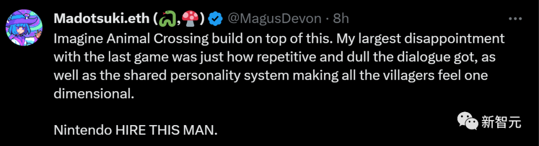 「《动物之森》中重复、沉闷的对话,所有村民共有的一维人格系统,都太令人失望了。任天堂赶快学学吧!」