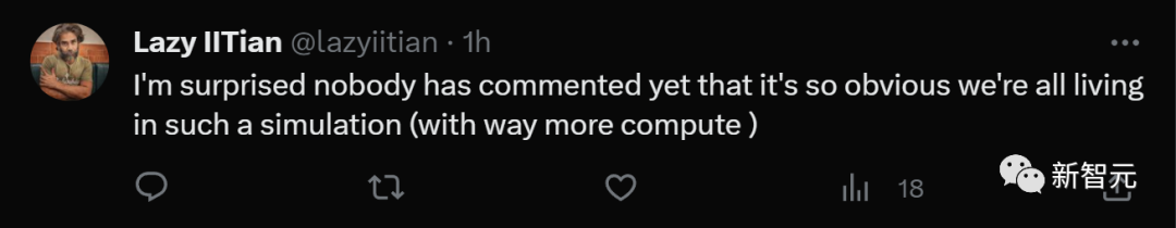 当然,也有人表示,你们激动个啥?其实我们一直都生活在这样的模拟中,只不过我们的世界有更多的算力罢了。