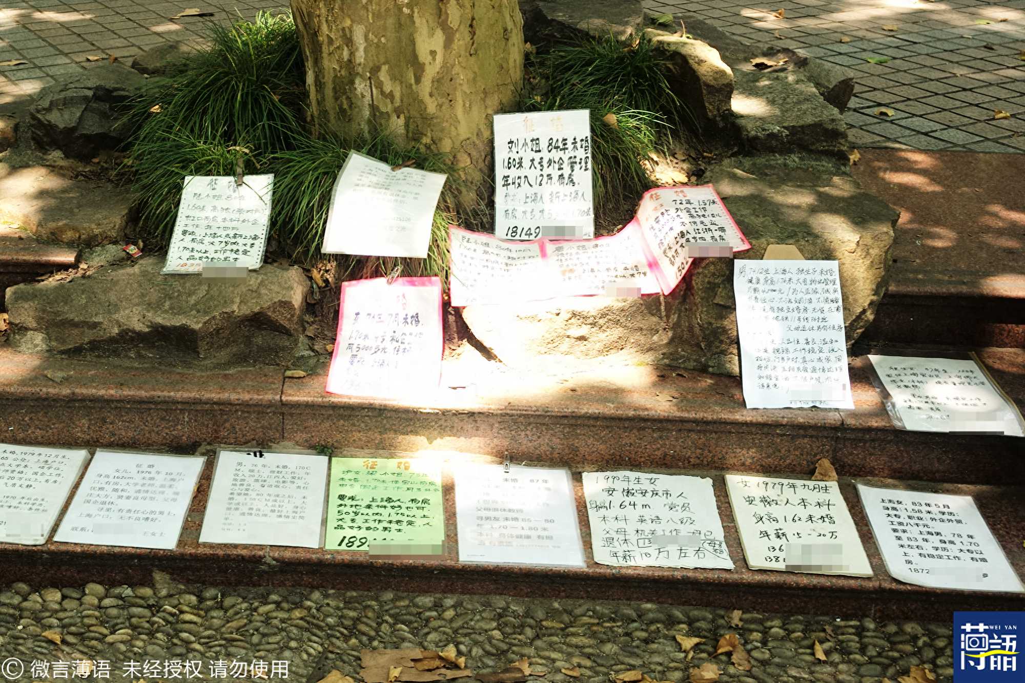 一些非沪籍的征婚信息只能扔在公园的一棵大树下。
