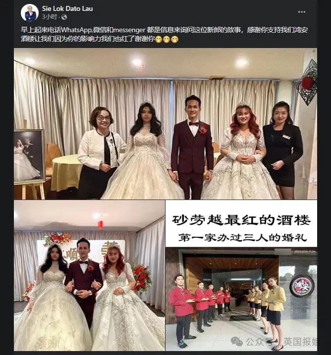 他们大打广告,一早便在面子书专页上发帖,自称“砂拉越最红的酒楼,第一家办过三人的婚礼”。