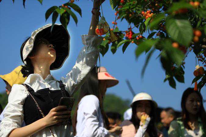 “我是陪闺蜜来的,前两天在网上有看到这里有活动,就想过来踏踏青,春天嘛,特地挑了一身好看的衣服做了个造型过来。刚尝了一下,樱桃很甜,个也很大,还是挺开心的。”上海游客张英俊笑着说。