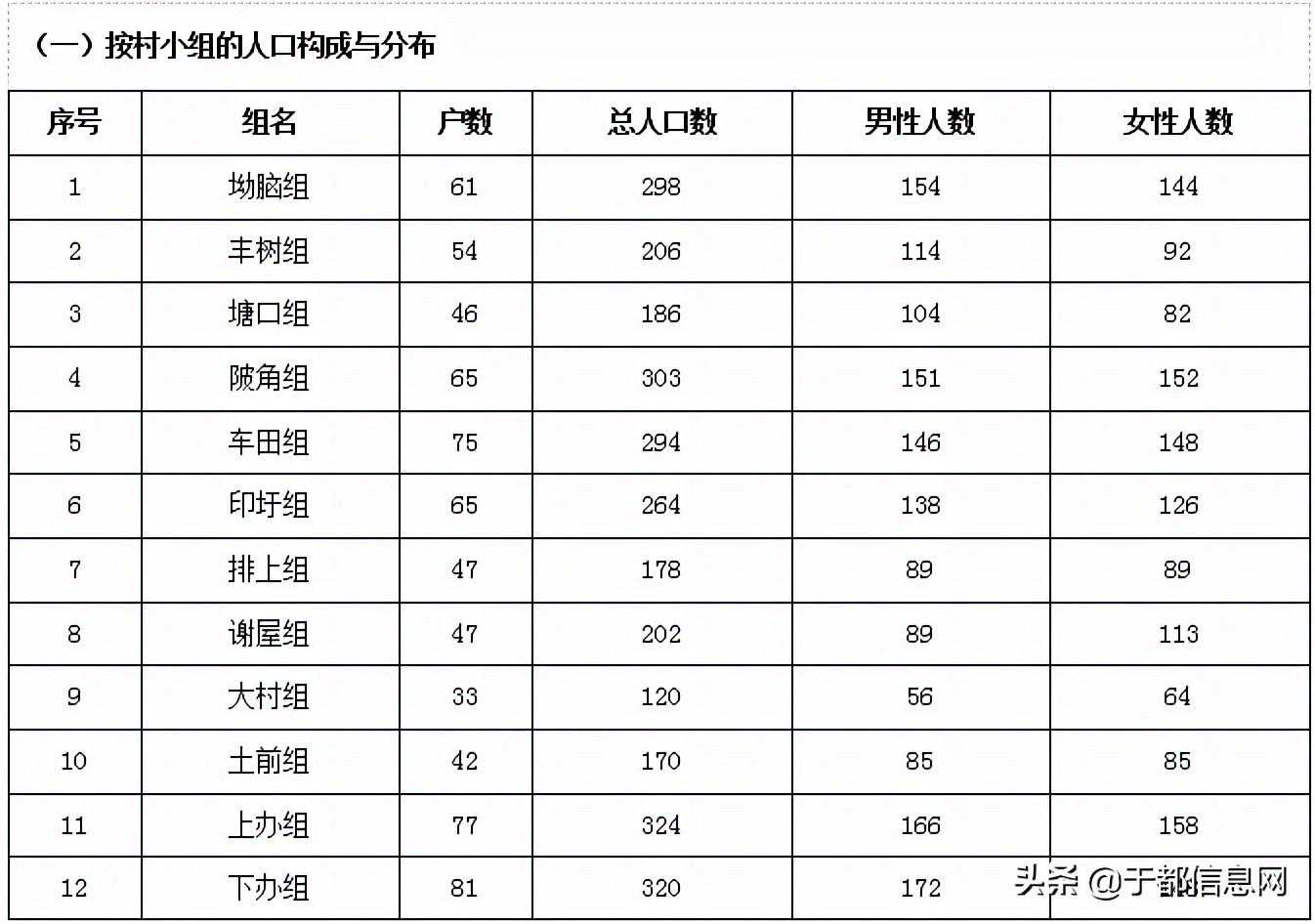 (一)按村小组的人口构成与分布