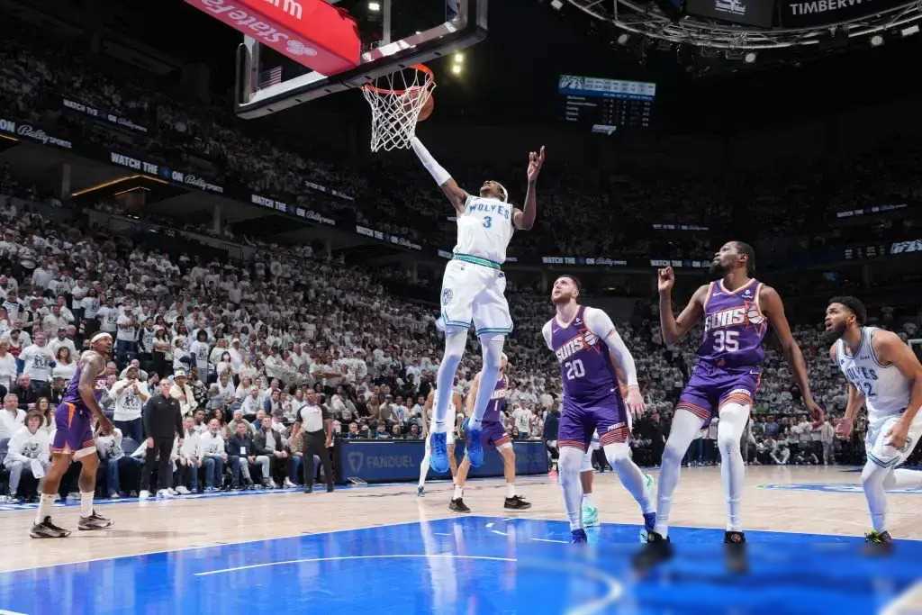 接着,我们再来看看太阳队对阵森林狼队的比赛。太阳队虽然是常规赛中的佼佼者,但在面对森林狼时却显得力不从心,再次遭遇败绩。这场比赛可谓是一场强强对话,双方你来我往、你追我赶,场上的比拼简直就是一场篮球盛宴,让人目不暇接、大呼过瘾!