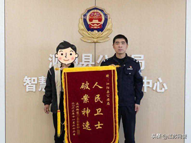 近日,受害人于先生(化名)将一面印有“人民卫士破案神速”的锦旗送到泗阳县公安局反诈中心,感谢办案民警为其挽回损失。
