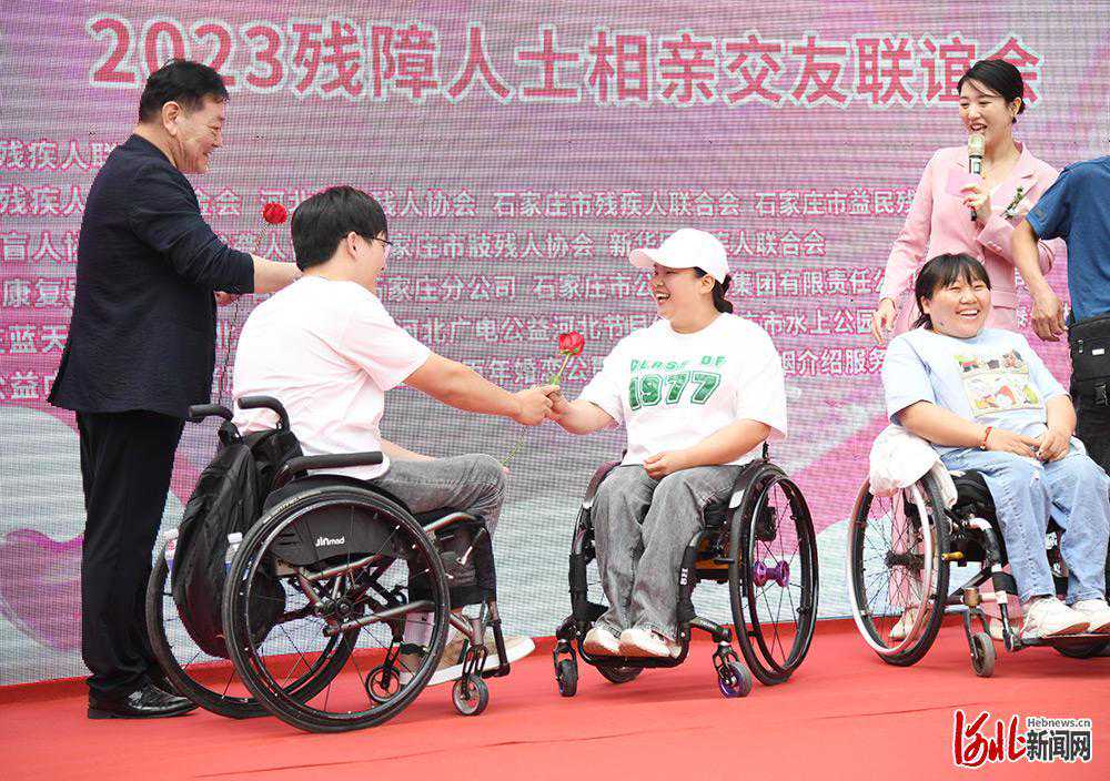纵览客户端讯(王立坤宁晓娜)5月20日上午,来自北京、天津、山西、辽宁、吉林、江苏、陕西、山东及河北等9个省市近500名单身残障朋友齐聚河北石家庄,共同参加“相约河北幸福同行”2023残障人士相亲交友联谊会,在第三十三次全国助残日前夕,寻找属于他们的幸福。当天共有17对残疾人朋友牵手成功。