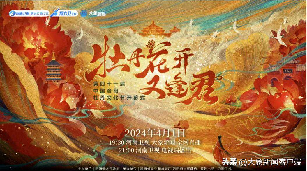 洛阳,这座千年古都,今晚将迎来一场视觉与听觉的盛宴——第41届中国洛阳牡丹文化节开幕式《牡丹花开又逢君》。此次开幕式由河南省人民政府主办,河南省文化和旅游厅、洛阳市人民政府承办,河南卫视策划出品,将于19:30在洛阳上阳宫隆重举行。河南卫视新媒体平台19:30同步直播,河南卫视电视大屏端21:00播出。