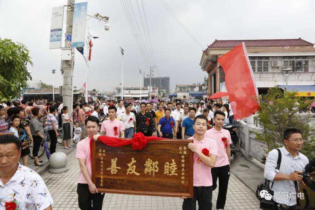 在果陇村祖祠,北山村向果陇村赠送“眭邻友善”缔结友好乡村牌匾