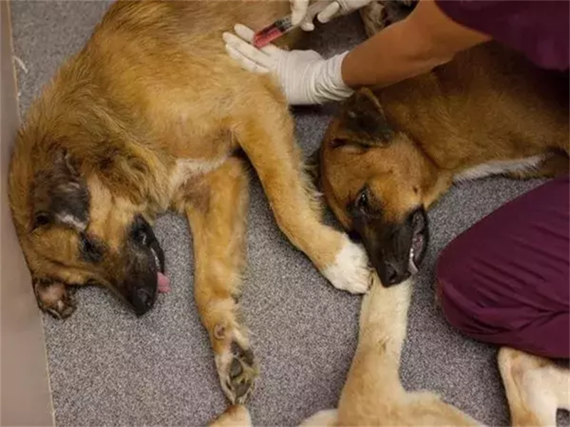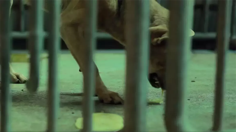 注射完镇定剂后,有的狗狗会很快倒地昏迷,有的却因为腹中有食物和水而呕吐不止。那些还没被注射镇定剂的狗狗,瞪大了双眼惊恐地看着这一切,嚎哭不止。