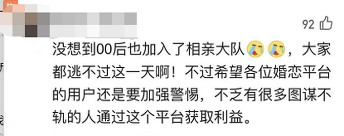 值得注意的是,伴随着中国超50亿元婚恋市场的发展,线下门店夸大宣传诱导消费、虚假会员信息、服务体验差等问题饱受诟病,婚恋平台借贷理财诈骗、骗色事件频繁出现。