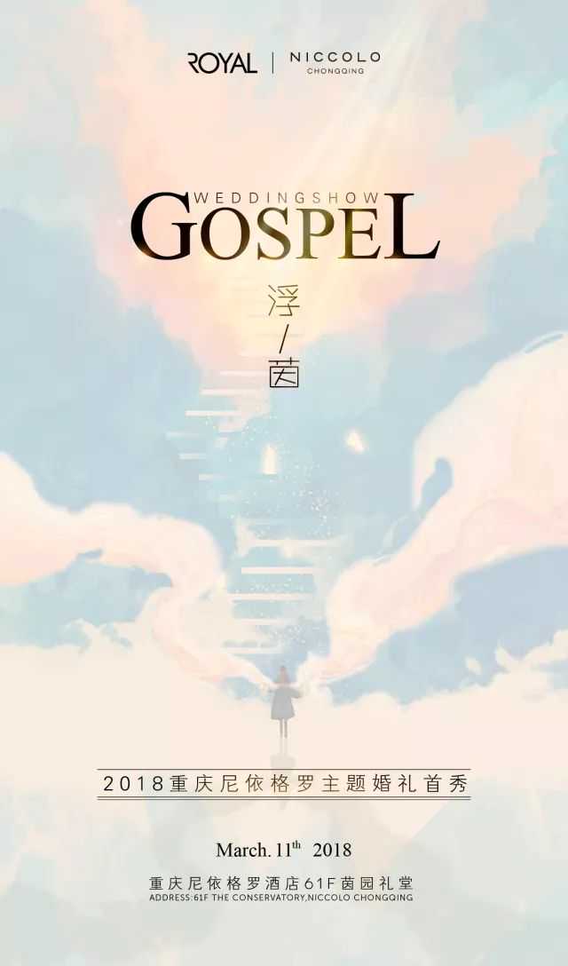 2018年3月11日,时尚新娘将与萝亚婚礼齐聚重庆尼依格罗酒店,拉开2018重庆尼依格罗主题婚礼首秀——Gospel(浮.茵)的帷幕。