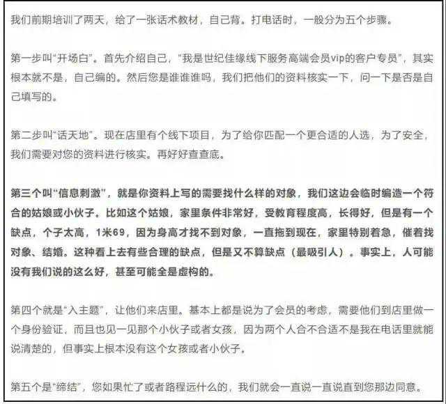 为了将用户从骗到线下,红娘们会根据用户所填的资料,虚构出几个完美符合的优质对象,等用户到了门店,才会发现这些人根本不存在。