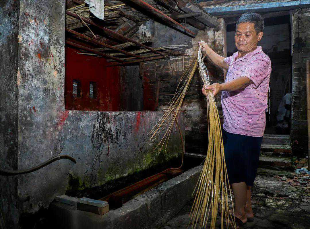 稳叔是桥头唯一做竹编工艺的本地人,也是桥头凉帽制作技艺非遗项目代表性传承人。他13岁跟随父亲邓万隐学习竹编手工技艺,并一直坚持经营竹编生意数十年,把桥头的竹编文化传承至今。