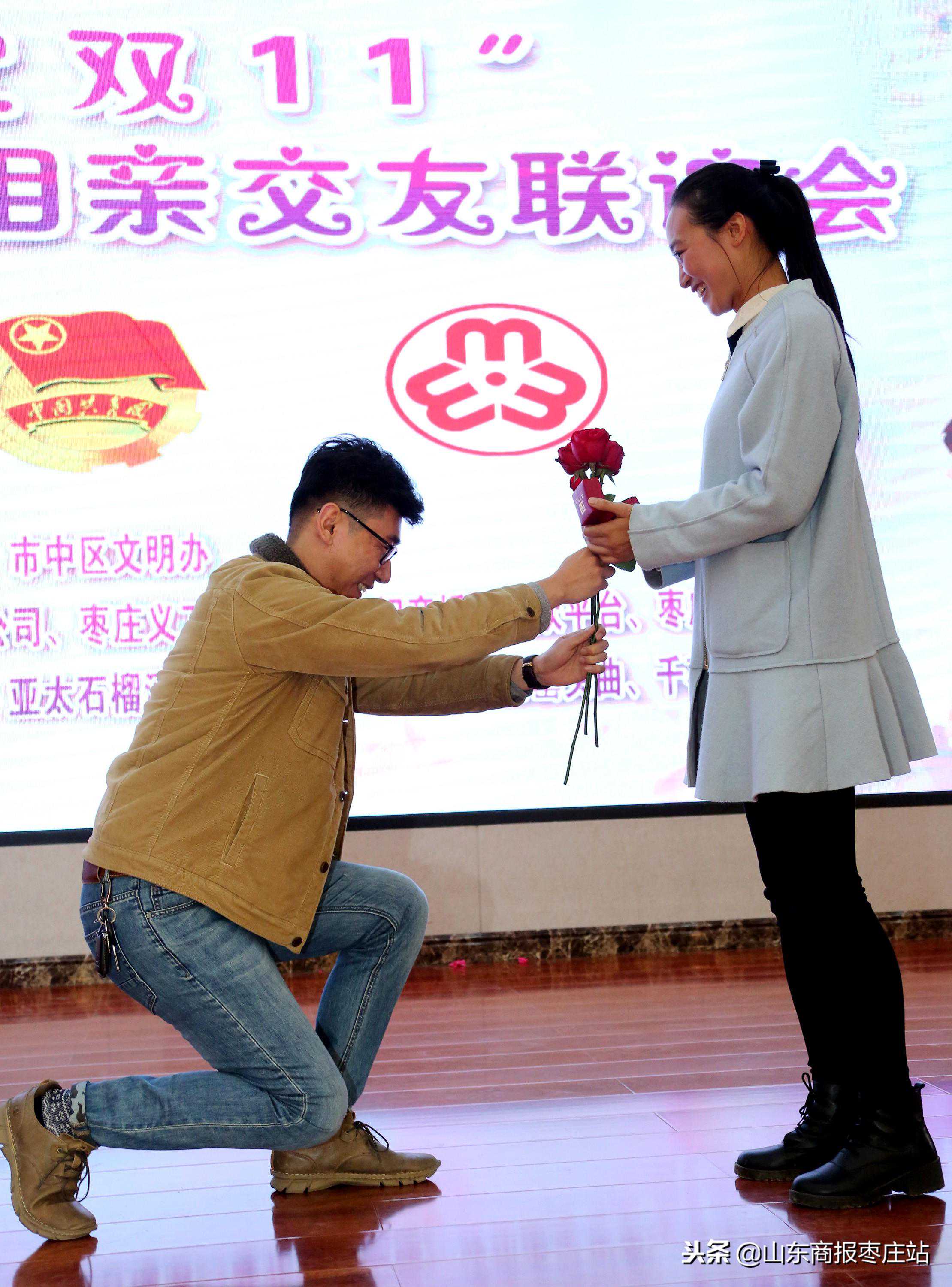 山东商报枣庄讯(通讯员吉喆摄影报道)11月11日,山东省枣庄市市中区团委、妇联、文明办等部门联合举办了“情定双11”公益相亲交友联谊会,吸引众多单身男女前来相亲交友,期待加入“脱光族”。