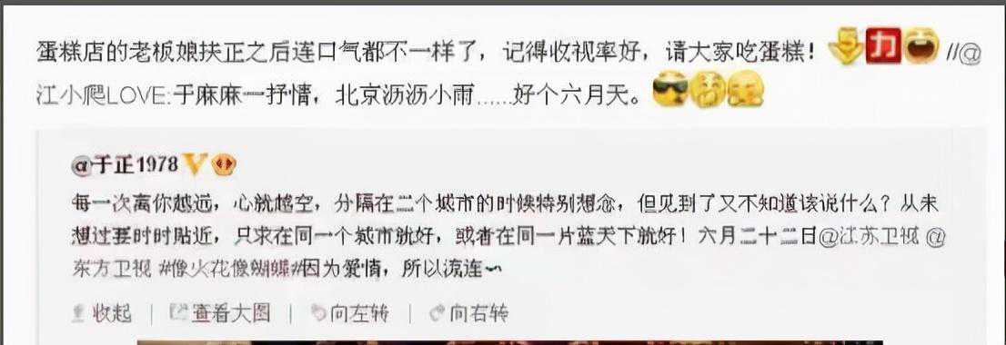 在社交平台上,江一燕更是频频发博,字里行间透露出恋爱的气息。