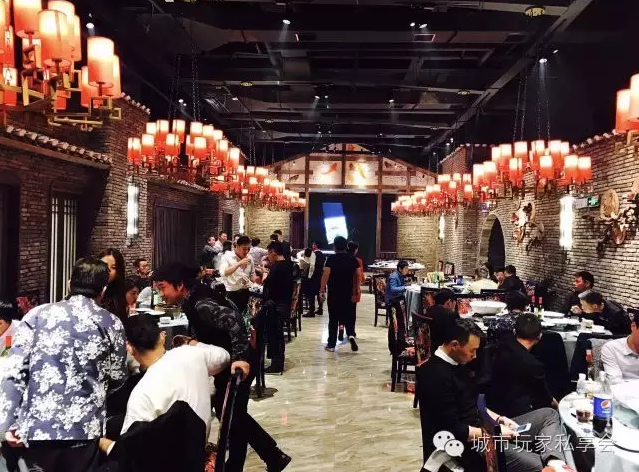 晚宴中,大家其乐融融举杯祝福饭菜夫妇。