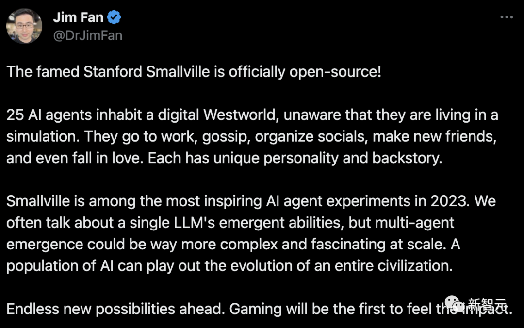 而在今年4月,斯坦福和谷歌的研究者竟然构建出了一个虚拟小镇,让25个AI智能体在其中生存、从事复杂行为,简直堪称是《西部世界》走进现实。