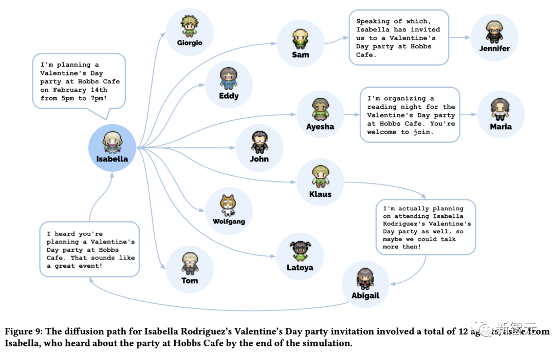 比如,Isabella策划一个情人节party邀请大家来。12个智能体中,7个人还在考虑中(3个人有了别的计划,还有4个人没有想法)。