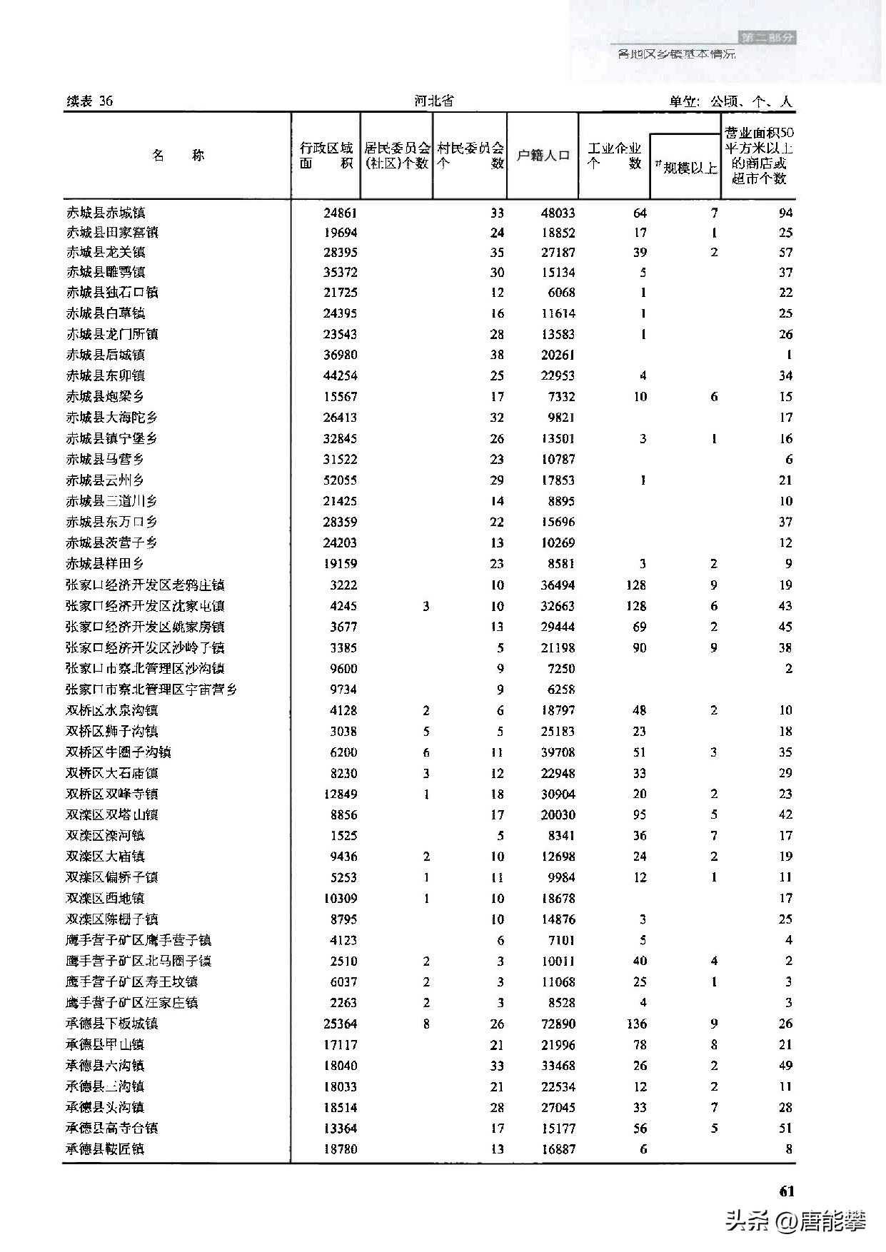 承德3区、承德县38镇的变迁:人口、土地、工业…基本统计