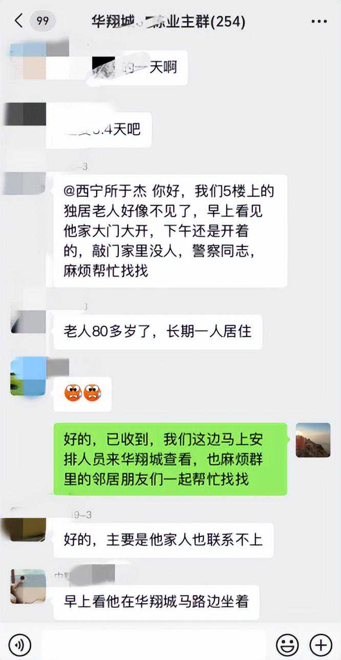 “警察同志,华翔城31栋*楼*户的独居老人不见了,家门大开,已两天没有见到人了。”2023年8月,华翔城一居民在警民微信群里发送的这条消息牵动所有人的心。“好的,我们马上来现场查看,也请群内的邻居朋友们一同协助寻找。”