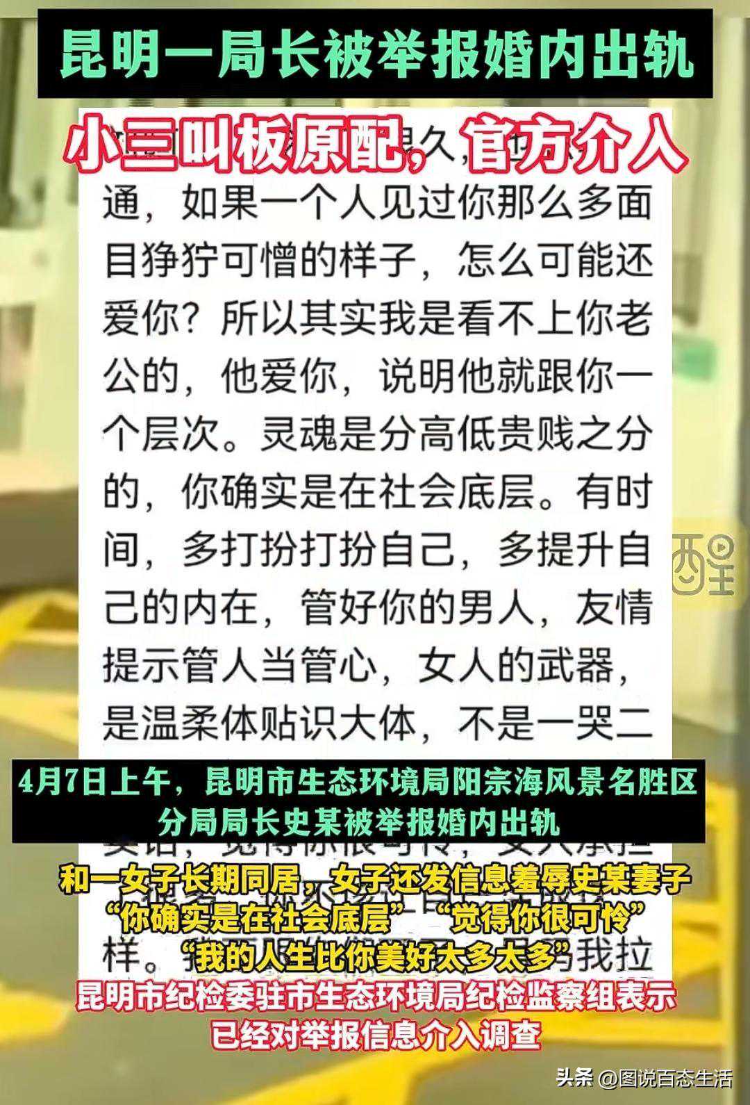 就在4月8日,网络上爆出了一段劲爆的消息:云南昆明市生态环境局局长婚内出轨。