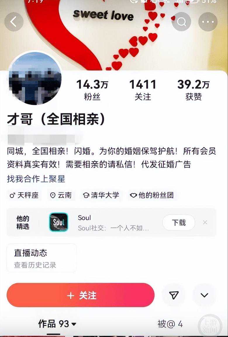 内地传媒上游新闻报道,昨日已无法在涉事短片平台检索不到有关征婚部落客帐号。据了解,该主播IP,是位于云南省红河州弥勒市。弥勒市公安局工作人员表示,正在核查相关网传讯息,具体以官方通报为准。弥勒民政局工作人员表示,已介入处理。