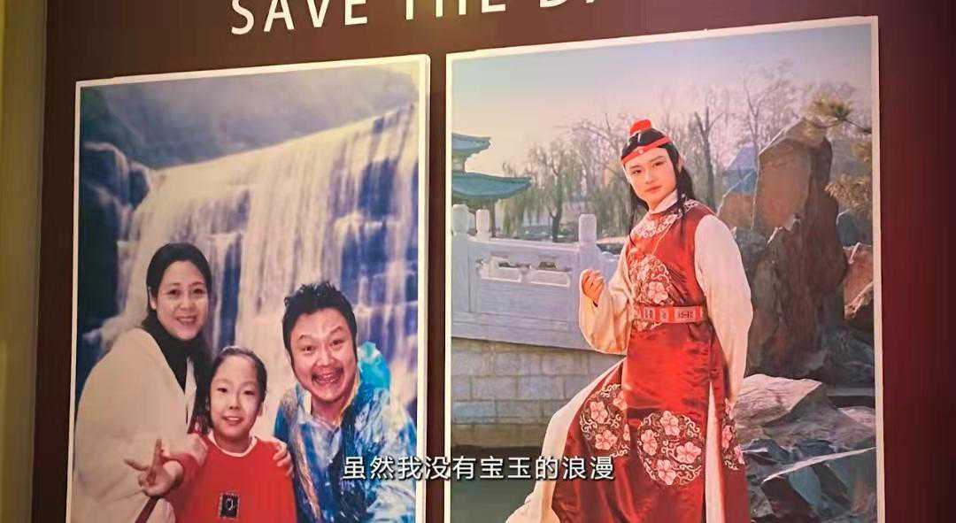 现场的布置中,还可以看到欧阳奋强与老婆年轻时的照片,在他们合照的右侧,放的是贾宝玉的剧照。