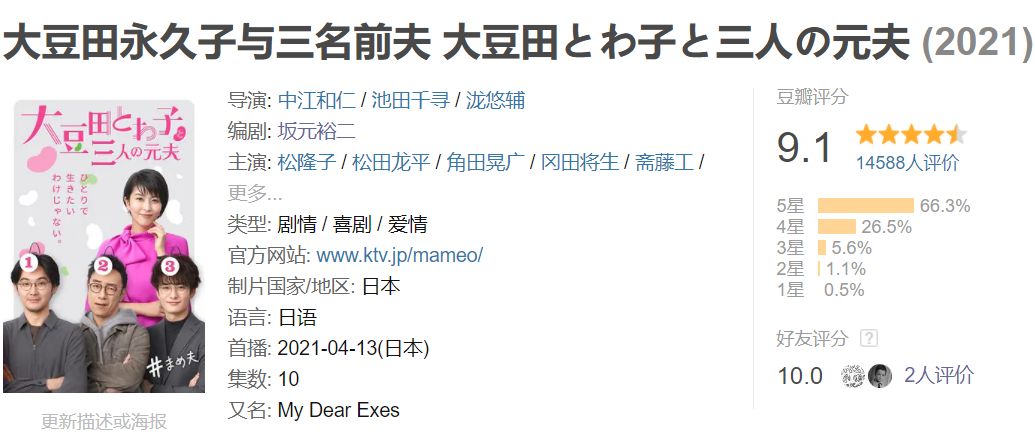 这一次,是“一女三男”的爱情轻喜剧《大豆田永久子与三名前夫》。