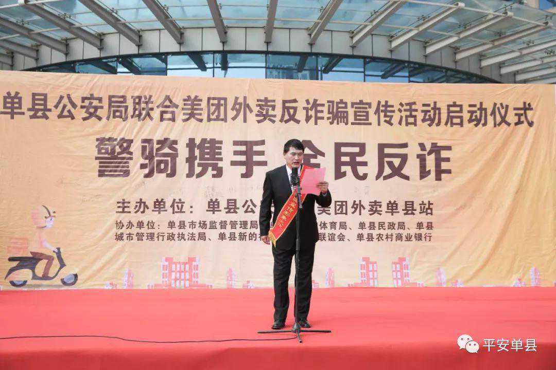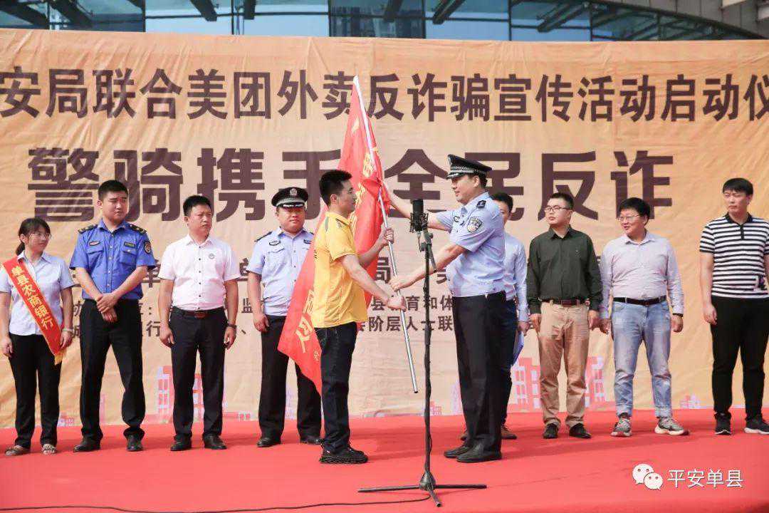 为响应公安部开展以“打诈骗、抓逃犯、保大庆”为主题的“云剑行动”以及“2019净网行动”,有效遏制电信网络诈骗案件多发态势,营造良好的打击防范电信网络诈骗工作氛围,为新中国成立70周年创造良好的社会治安环境,9月3日上午,单县公安局联合美团外卖在单县文化馆广场举行以“警骑携手全民反诈”为主题的宣传活动启动仪式。