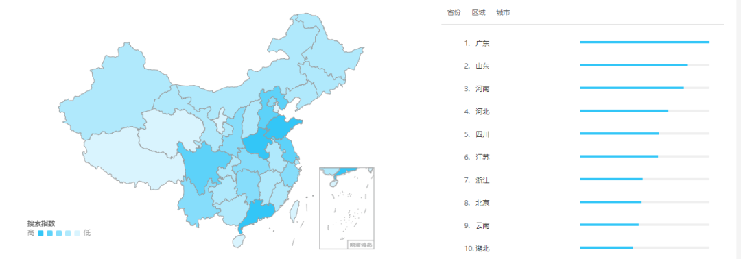 地域分布方面,集中在广东、江浙沪等经济较为发达的地区,尤其广东省市场份额较高;这些地域互联网较为普及,大家对新鲜的事物接受程度高。