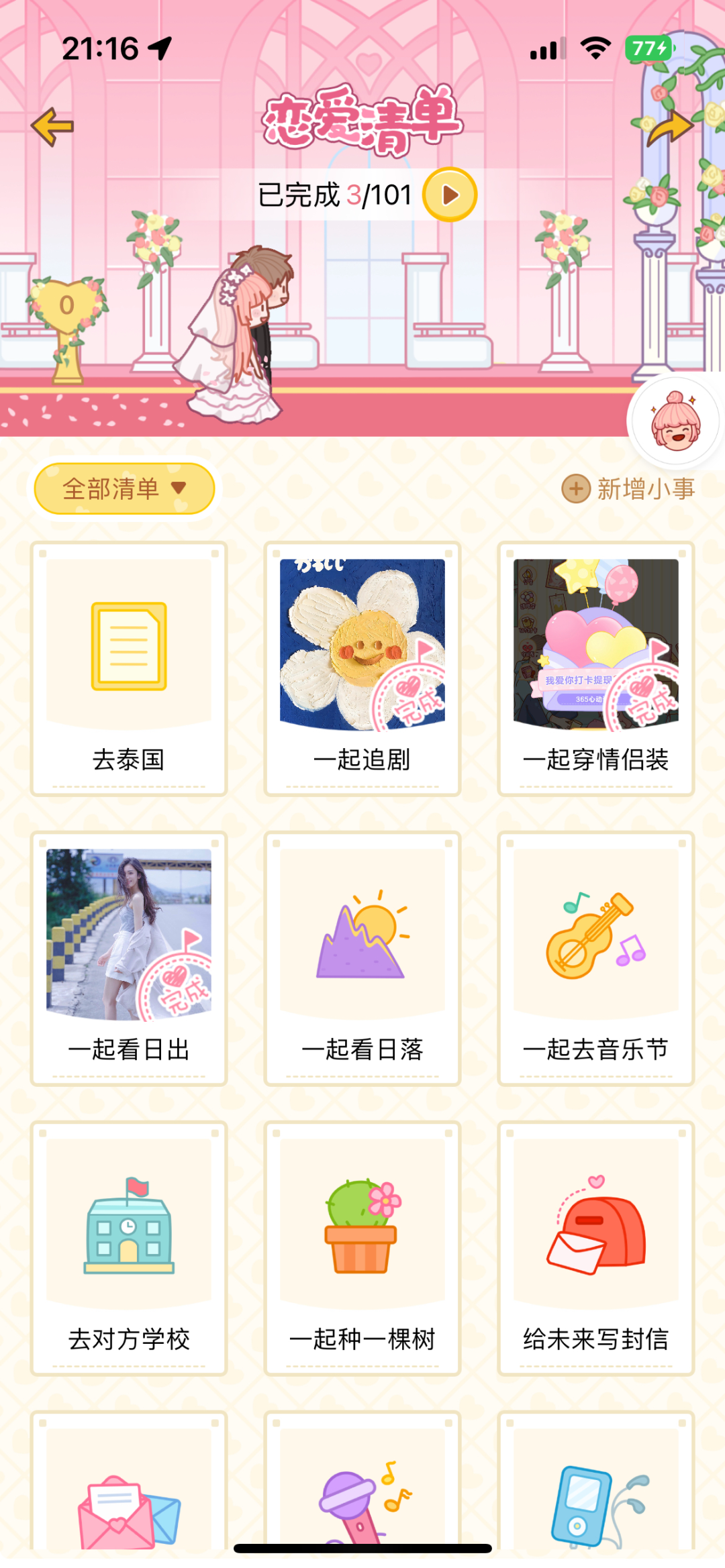 3)恋爱清单,婚礼进度条