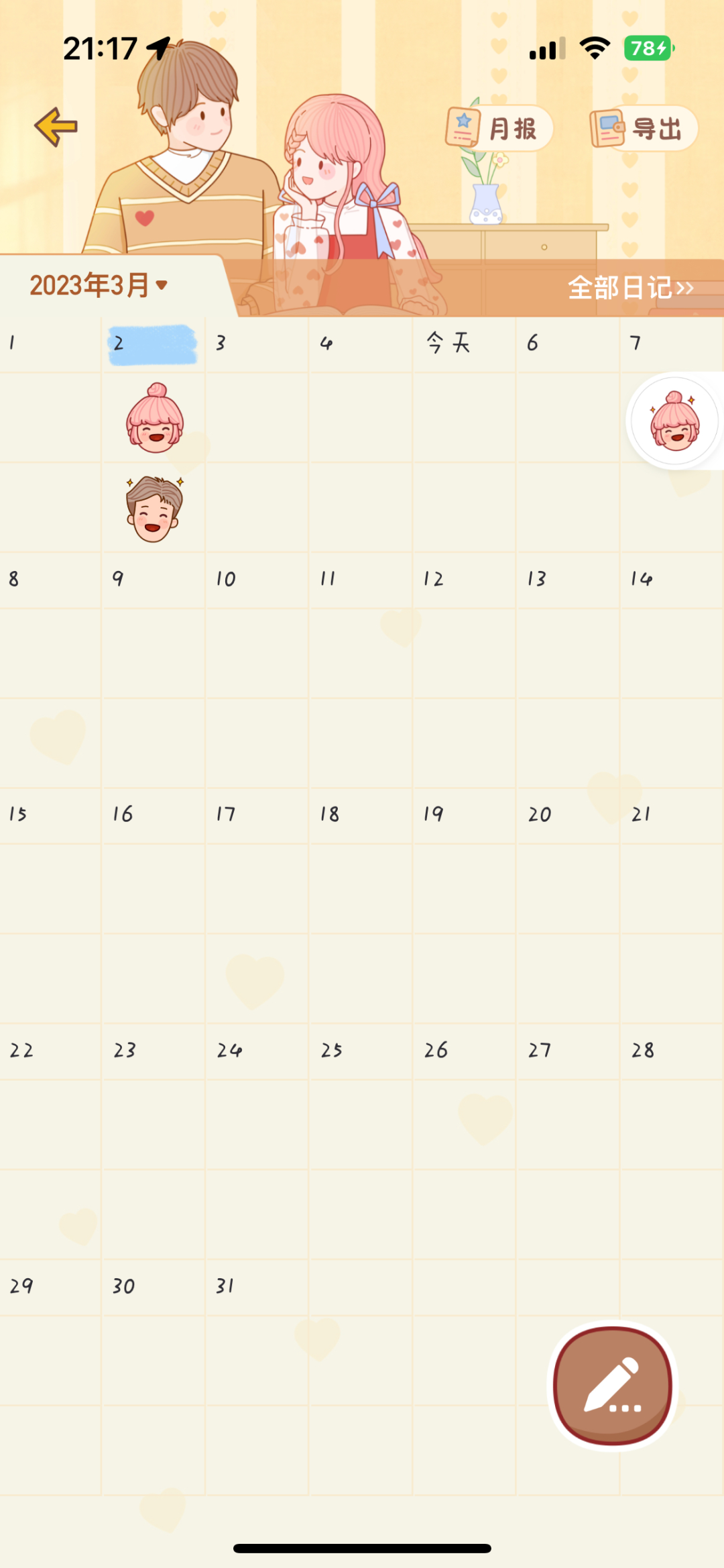 情侣双方都可以通过文字或者表情,来表达自己的心情,发送的日记,两个人也可以进行留言互动,记录生活的点点滴滴。