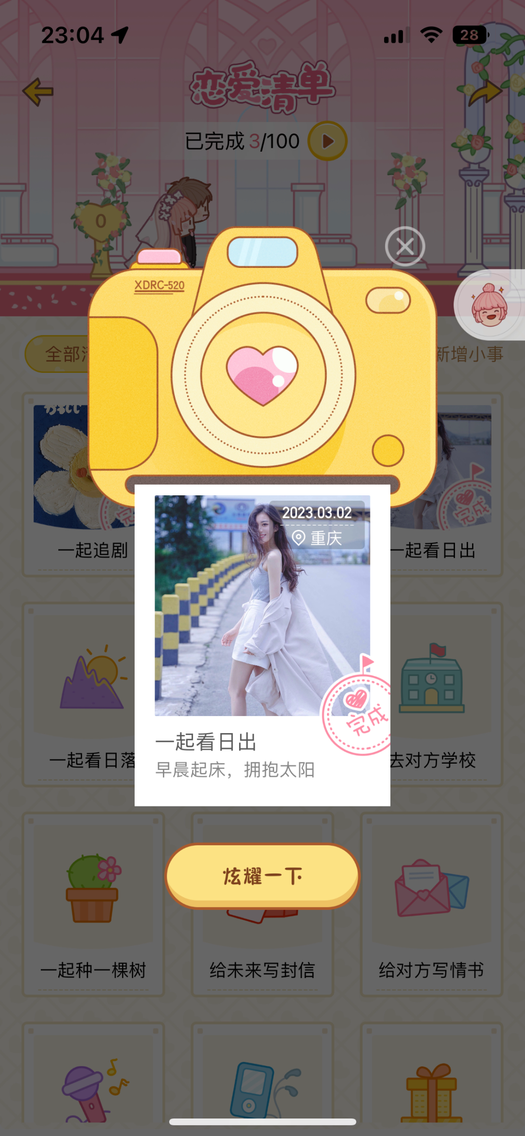 2)恋爱清单完成清单会用拍立得生产一张照片