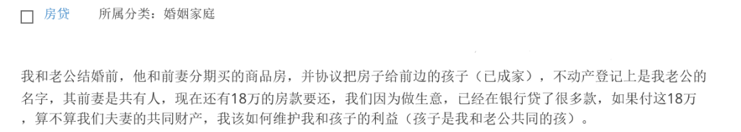 其次,从维护你的权益角度来看,该笔18万元的房贷原则上应该属于你老公和其前妻的共同债务,你老公应当要求其前妻共同进行偿还。但是,若他们在离婚时已通过协议或法院判决对该笔债务的承担进行了具体的分割的,则你老公需要依照协议或判决履行该笔债务。对你而言,房贷属于你老公的婚前债务,应由他自行承担。若他擅自用你们夫妻共同财产进行偿还的,属于对你财产权益的损害,你有权要求返还相应款项。最后,关于房屋最终的权属问题。即使现在你们夫妻决定用共同财产偿还18万元房贷,但因你老公已经与前妻协议将房子所有权给他们的孩子,该赠与协议合法有效,虽然现在该房屋尚未变更登记至其孩子名下,但是他们的孩子有权依据赠与协议主张获得该房屋所有权,而你无法就该房屋主张权益。