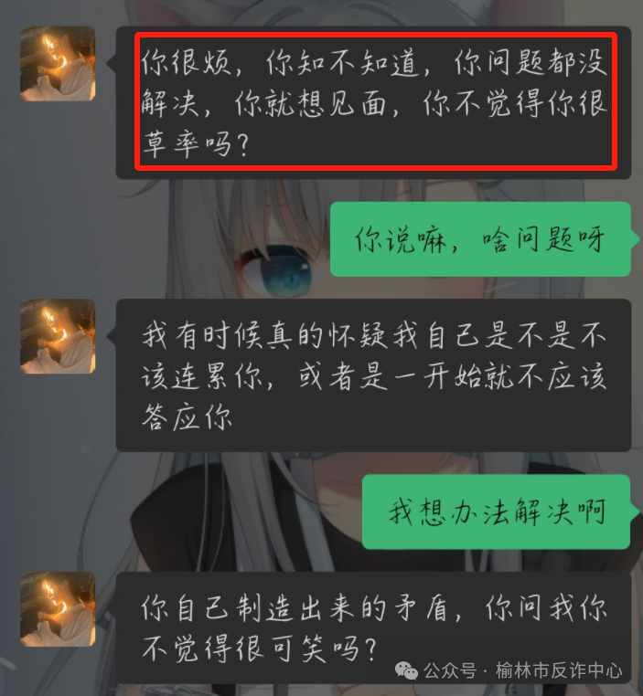 二、诈骗分子通过嘘寒问暖、甜言蜜语,一步步建立起“恋爱关系”,并做出见面承诺,取得被害人信任。