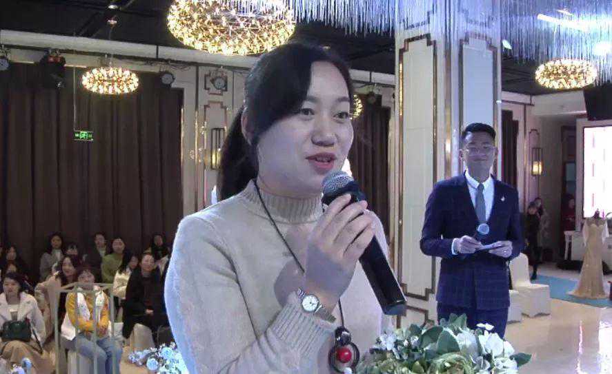下图这位女嘉宾收到了好几朵男士赠送的玫瑰花,看来这异性缘很是不错呢。她说“在这个愉快的周末、愉快的夜晚,希望大家都能找到心仪的另一半。”